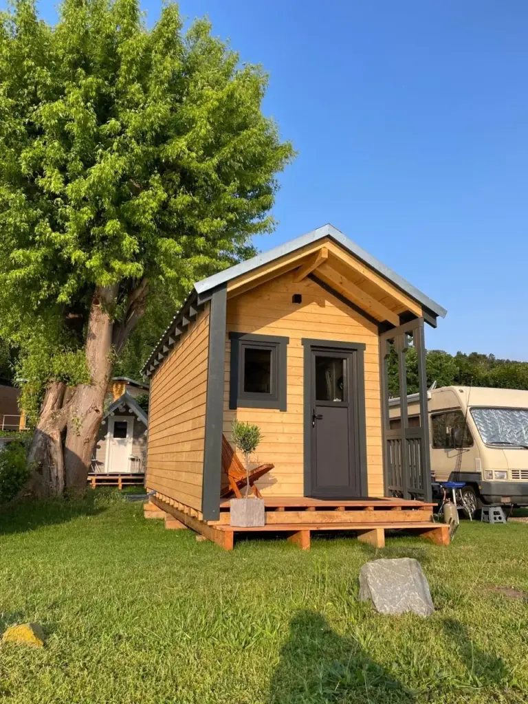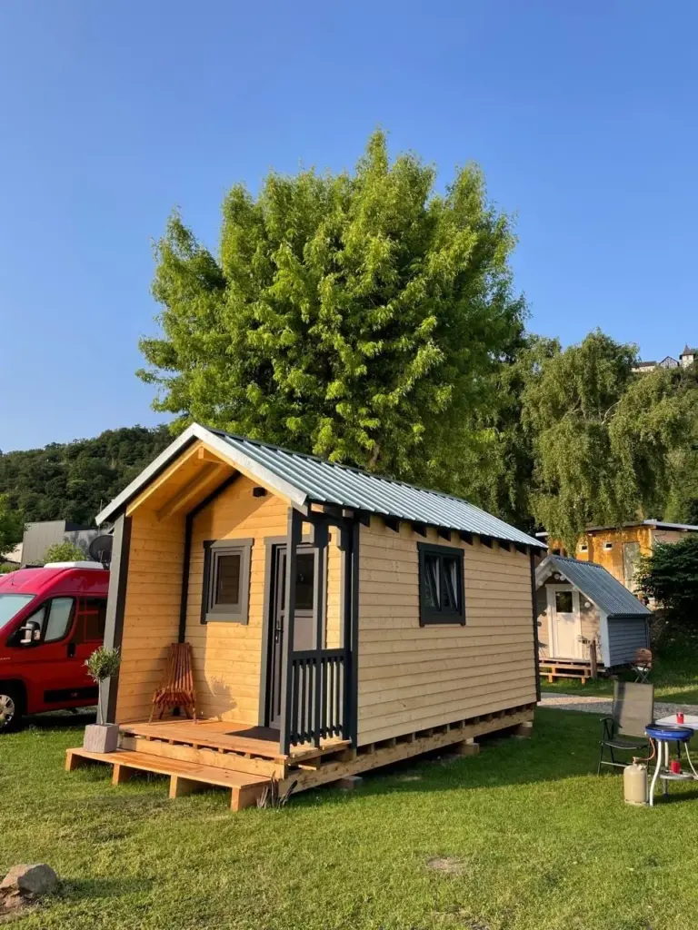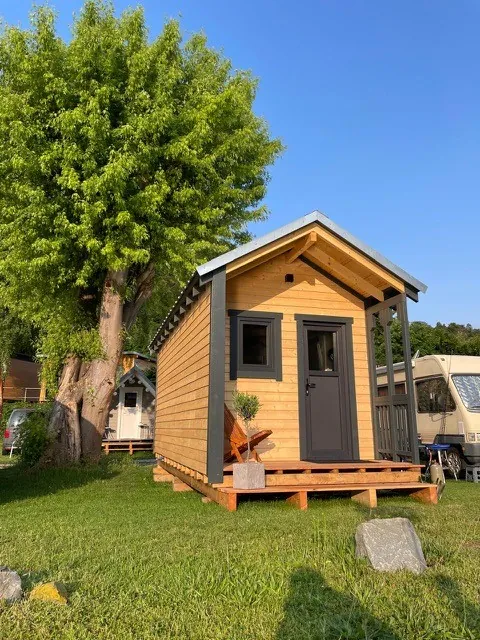 Unsere charmante Rheinlodge aus Holz bietet Platz für 2 bis 4 Personen und ist der perfekte Rückzugsort für alle, die Natur und Komfort miteinander verbinden möchten.